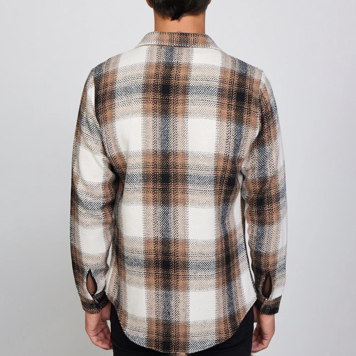 Plaid Flannel Shirt // White + Navy Blue + Brown
