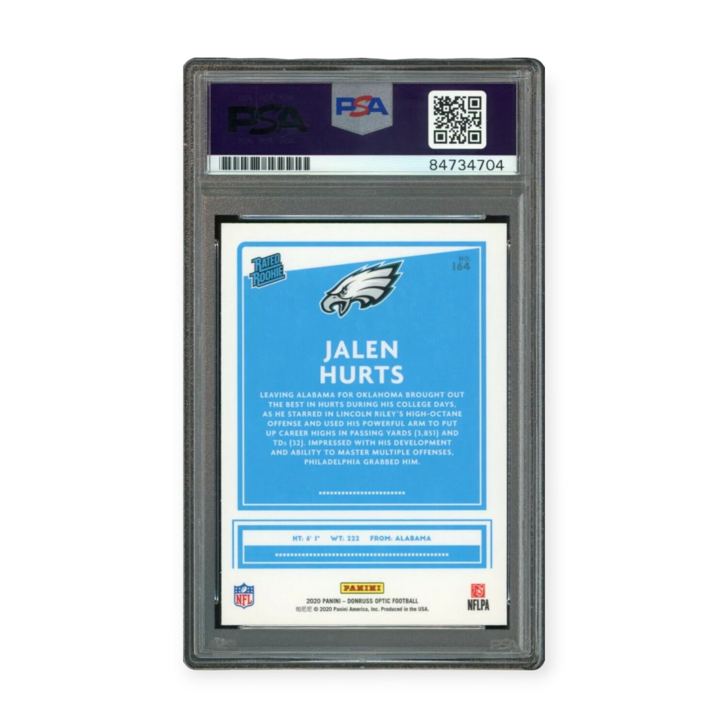 — Jalen Hurts 2020 Panini Donruss Optic Autographed Card