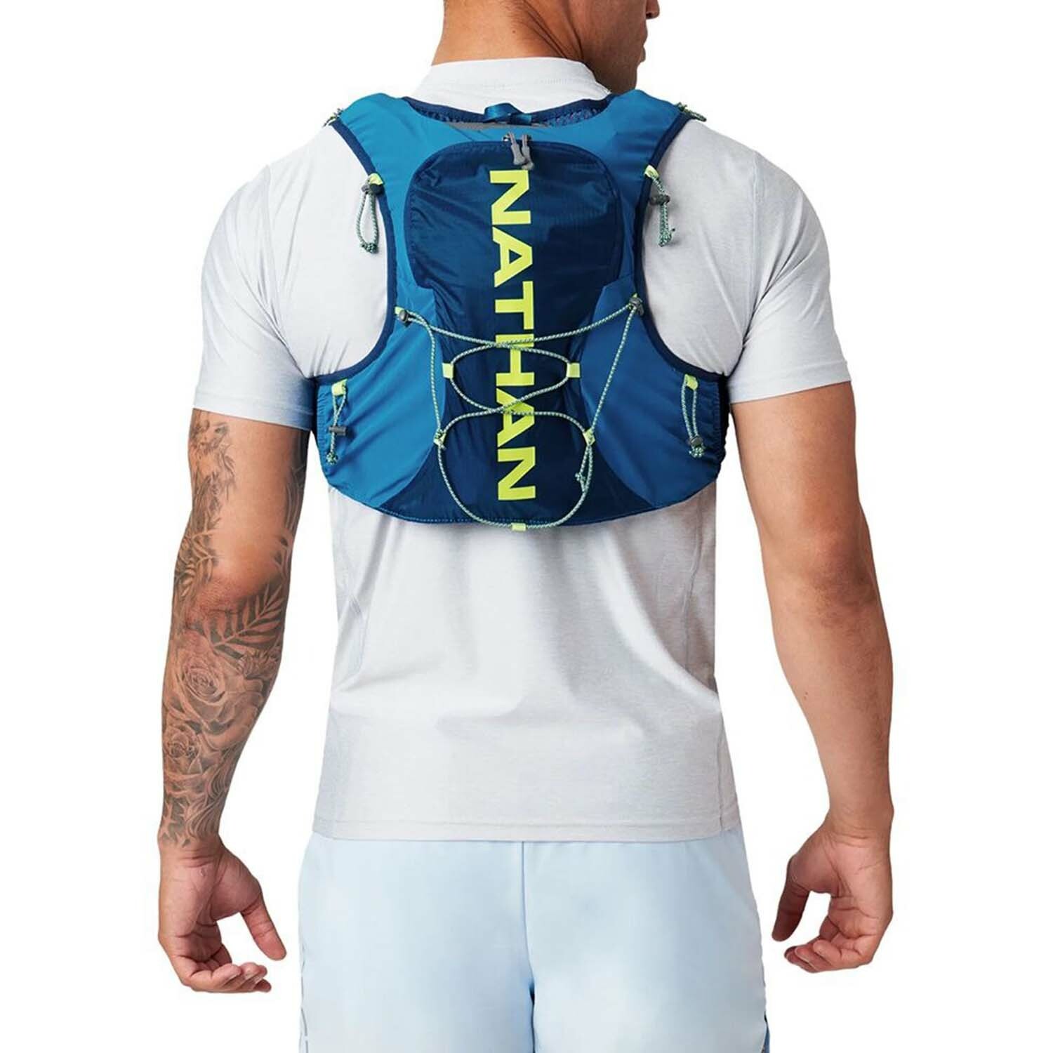 The Nathan Vapor Air 3.0 7L Hydration Pack is the next-generation update to this award-winning series. This vest rides high and tight for a snug runner fit with a Contoured Chimney back panel and moisture-wicking air mesh on the back and shoulder straps to keep us cooler and drier as we run hotter and hotter. At the same time, Nathan's Adaptive-Fit Adjustable Sizing System accommodates most body types, including expanded 1XL-3XL sizes. The Vapor Air comes with a 2L bladder and plenty of storage options for our valuables, devices, and snacks.