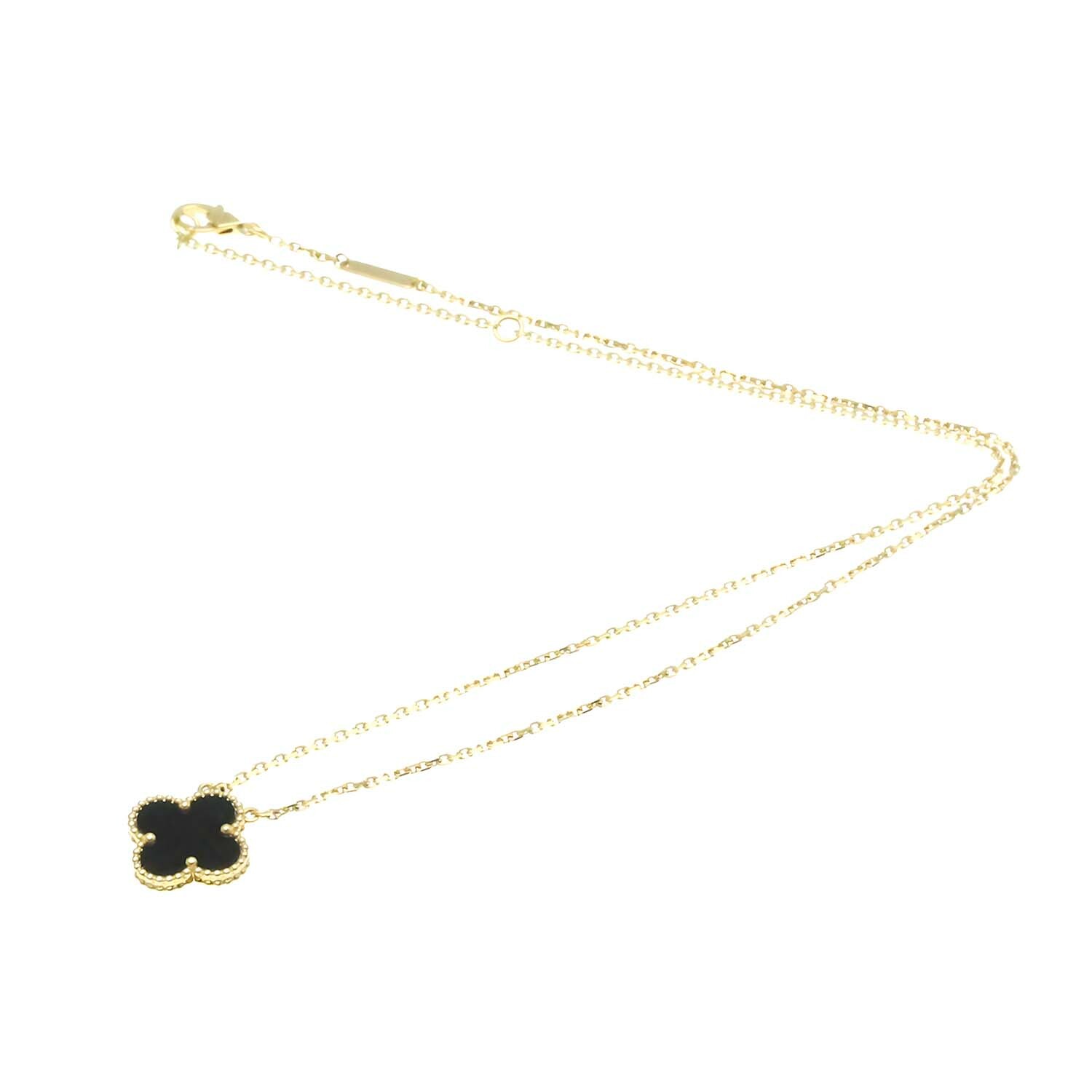 Van Cleef & Arpels // 18k Yellow Gold Vintage Alhambra Onyx Pendant Necklace // 4.56"-16.14" // Store Display