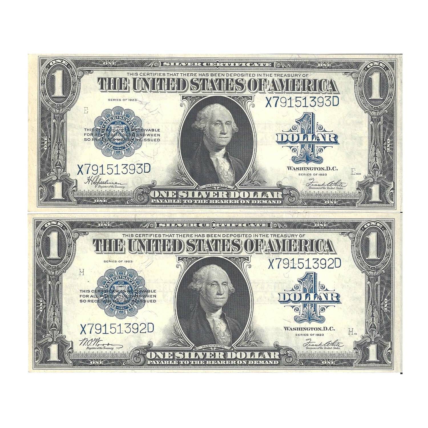 1923 $ 1 Silver Certificate Changeover Pair front # 392 - 393