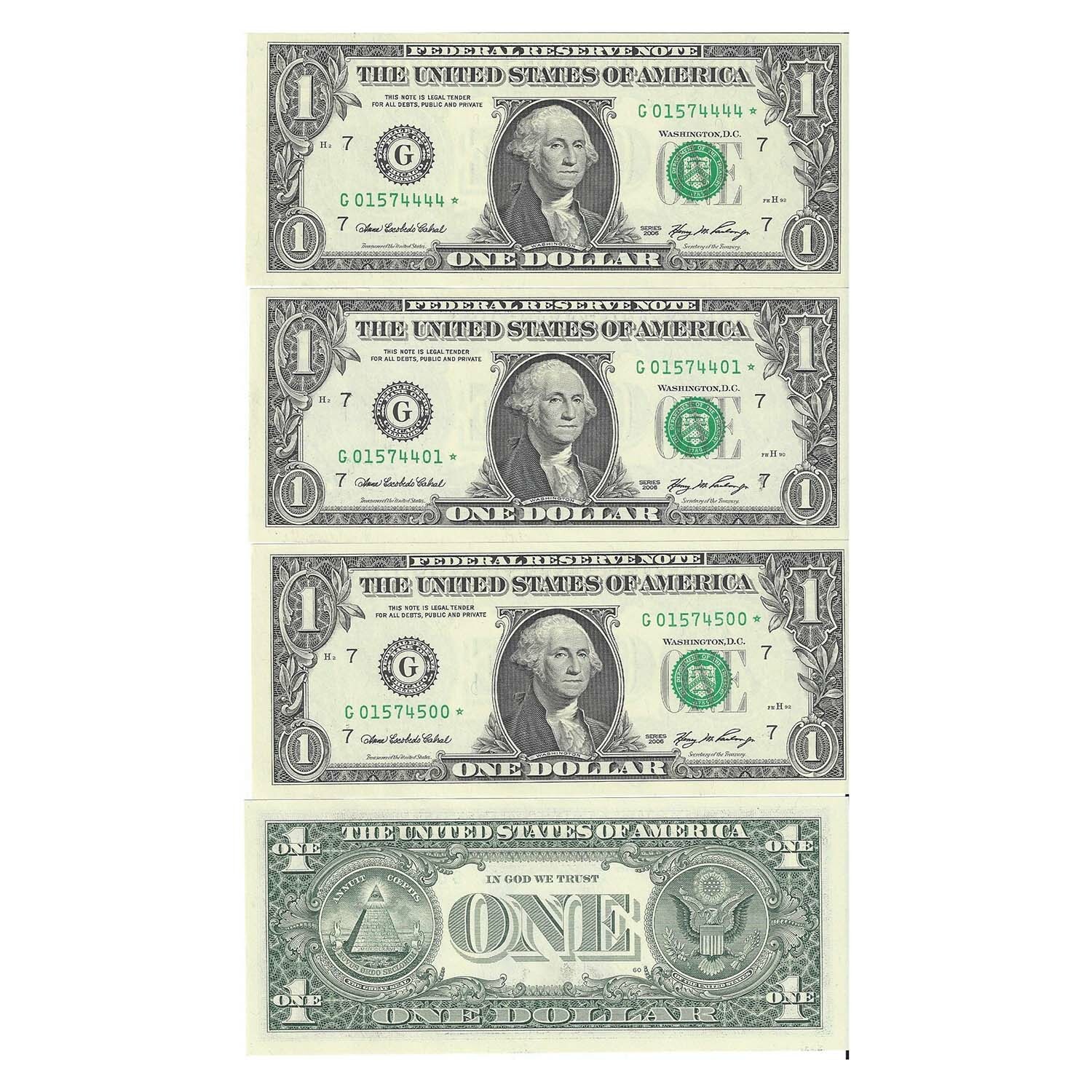 Being offered today is a VERY VERY RARE 2006 STAR PACK of $ 1 Federal Reserve notes. All of the notes are in Gem Brilliant Uncirculated (GEMBU) condition.