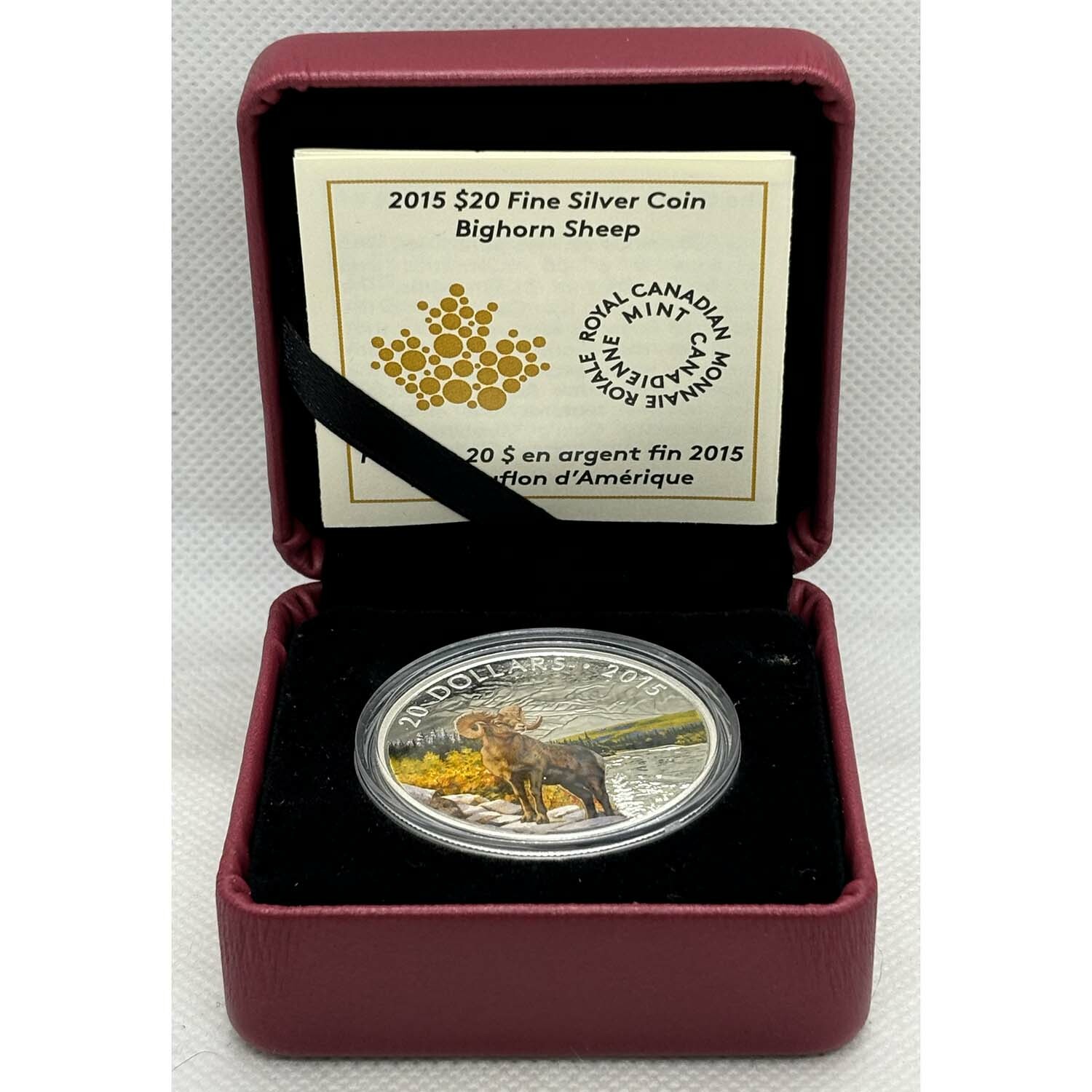 The coin uses distinctive coloring that brings a new dimension to the finely detailed engraving and beautifully showcases the big-horned sheep, as it would appear in its natural setting!