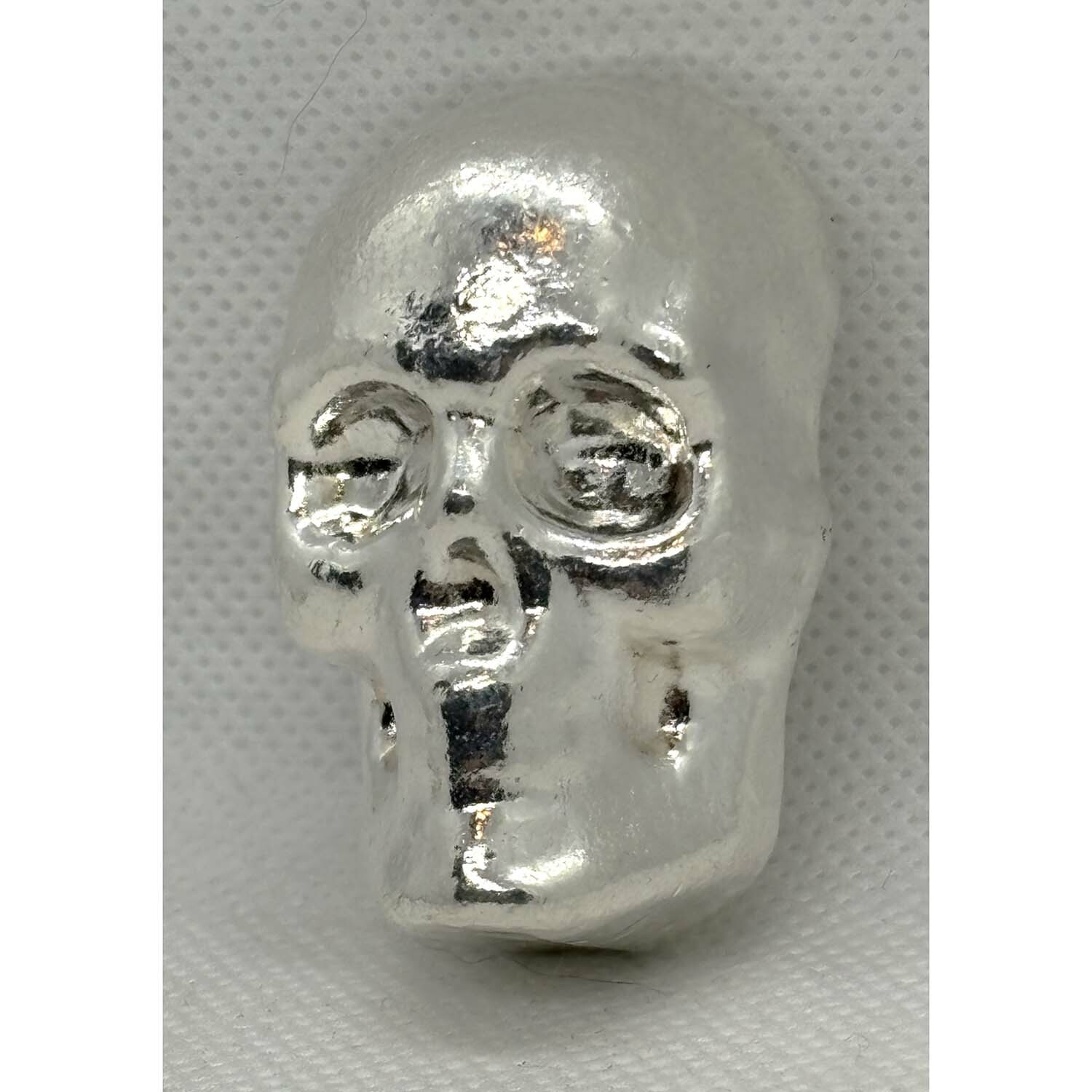 This HAND POURED three dimensional skull is 99.9% ( called 3 x 9’s Fine ) pure silver bullion.