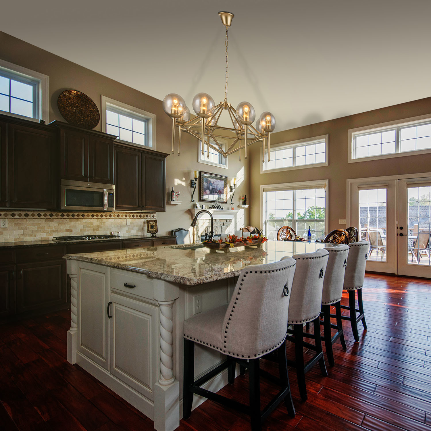 The Carillon Sputnik Chandelier is perfect for the living room or dining area. The metal finish with elegant globes reflects light to create a gentle glow.