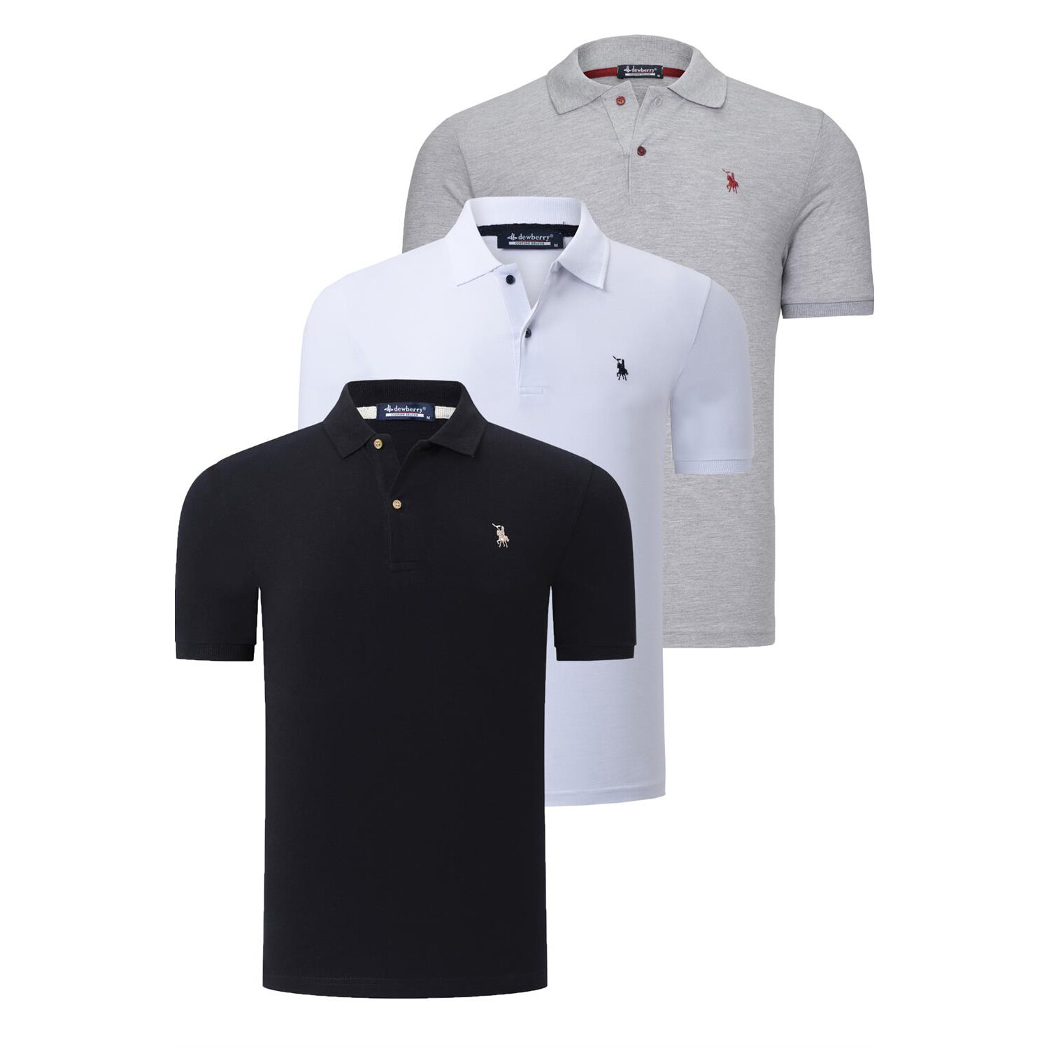 Set of 3 Short Sleeve Polo with Logo // Black + Dark Blue + White