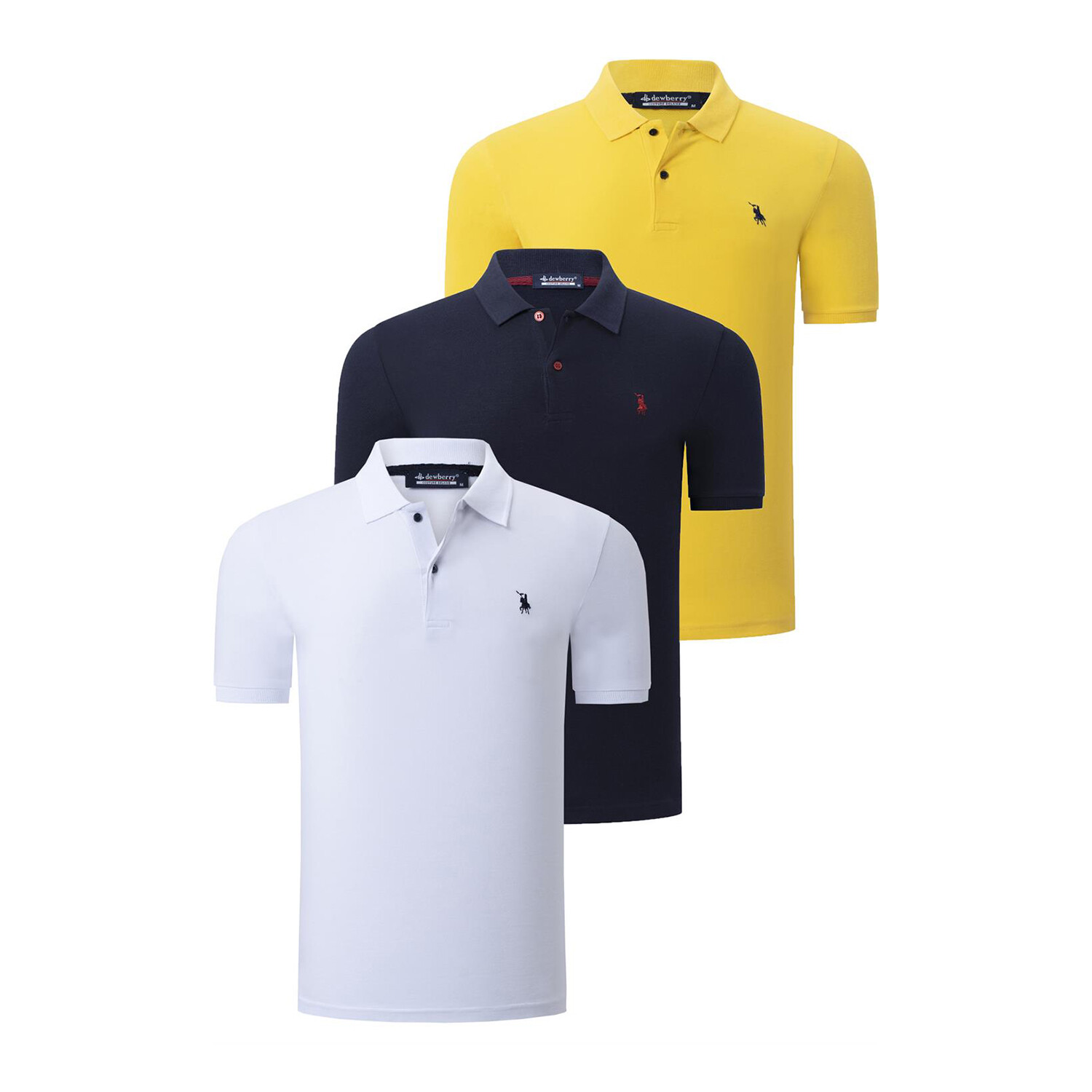 Set of 3 Short Sleeve Polo with Logo // Dark Blue + White + Yellow