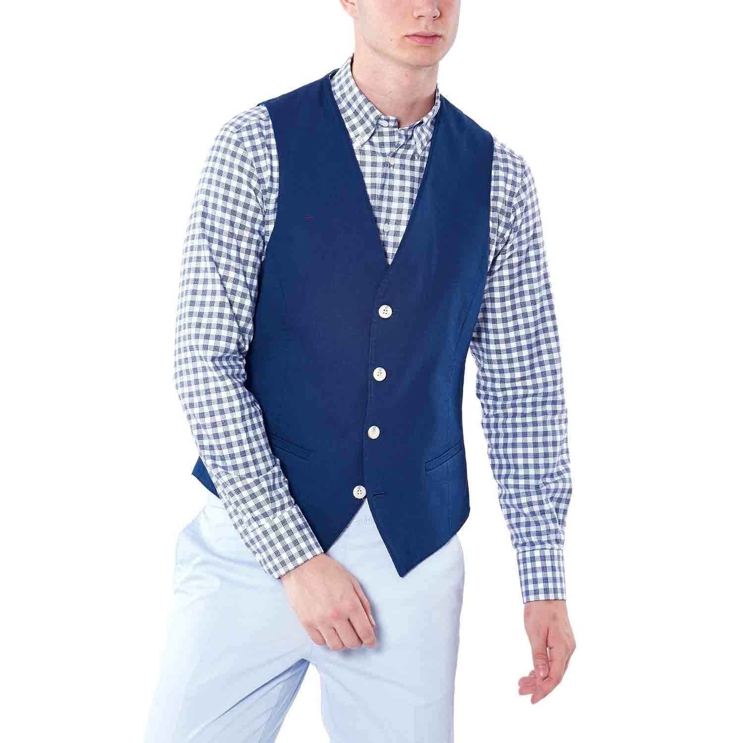 White Button Vest // Dark Blue