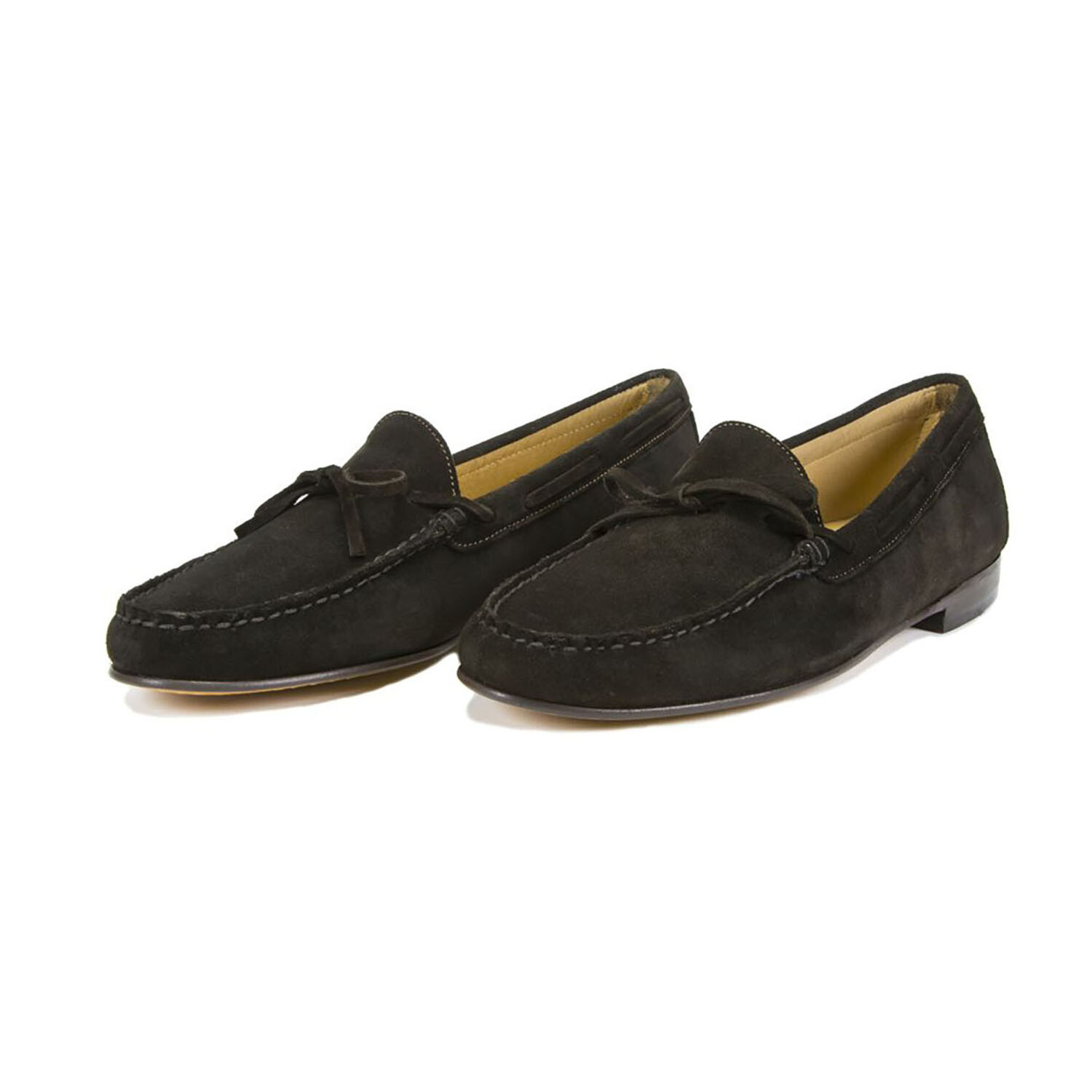 The Shipley Tie Loafer is a debonair slip-on built for refined comfort and everyday wear. Crafted with a hand-sewn upper in suede or full grain leather, it features classic lacing detail and genuine moccasin construction. A full leather sole offers durability and can be resoled for long-lasting performance.