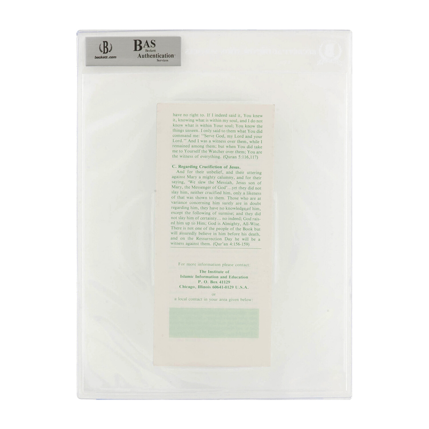 Muhammad Ali // Signed Islamic Brochure Series No.8 // Green 9x3 Pamplet