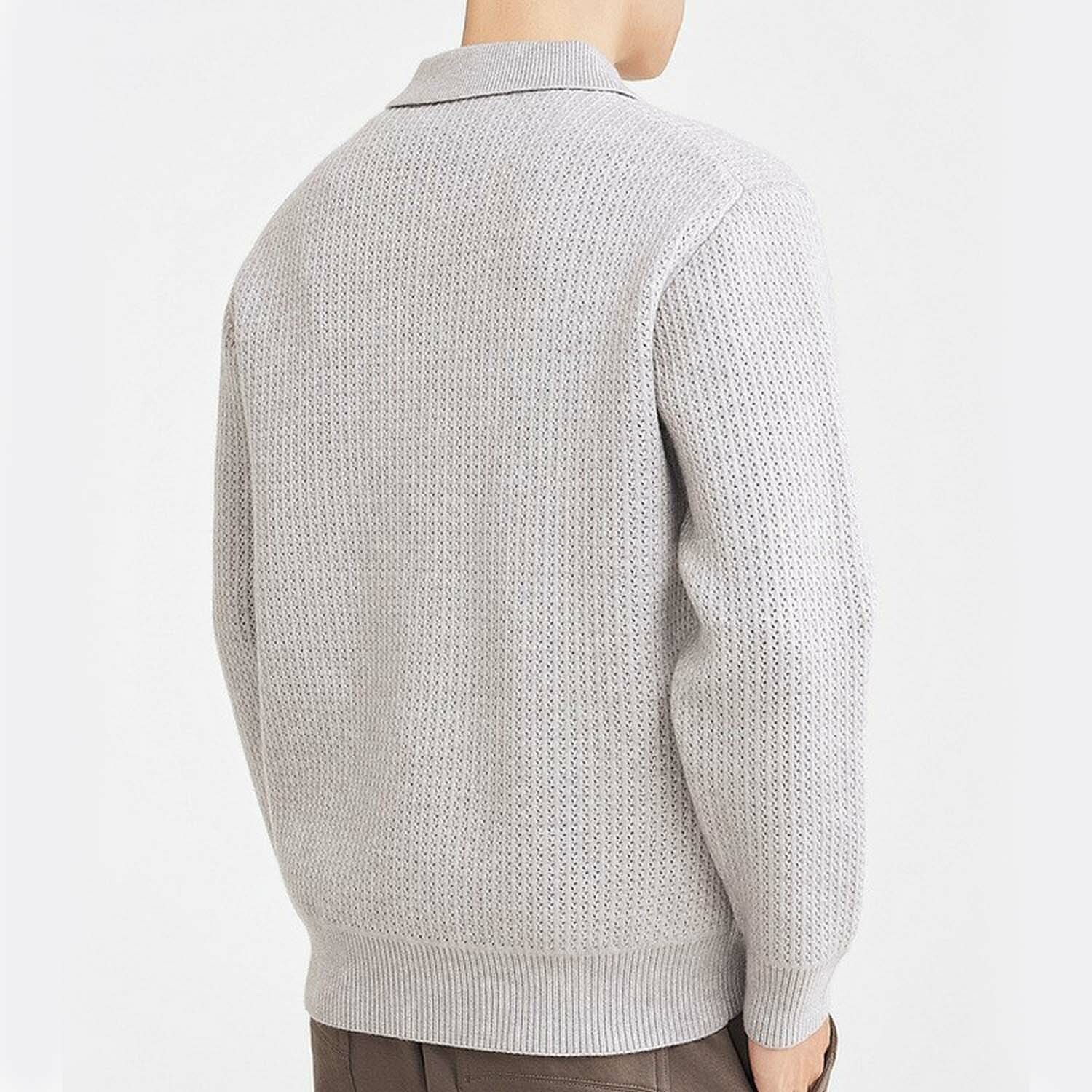 Waffle Knit Polo Sweater // Grey