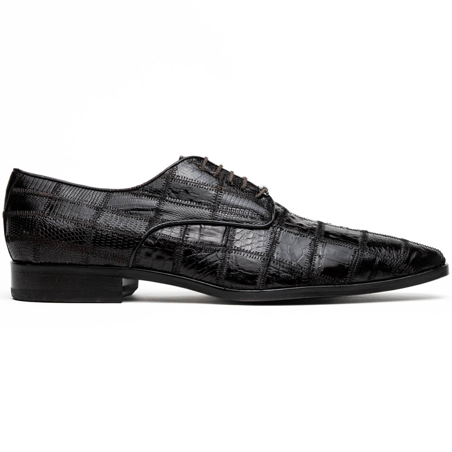 The PISSA is our genuine Caiman Fuscus and Lizard Derby, featuring an intricate patchwork design and elegant lace-up closure. Pair these with your favorite formal attire for a sophisticated look.