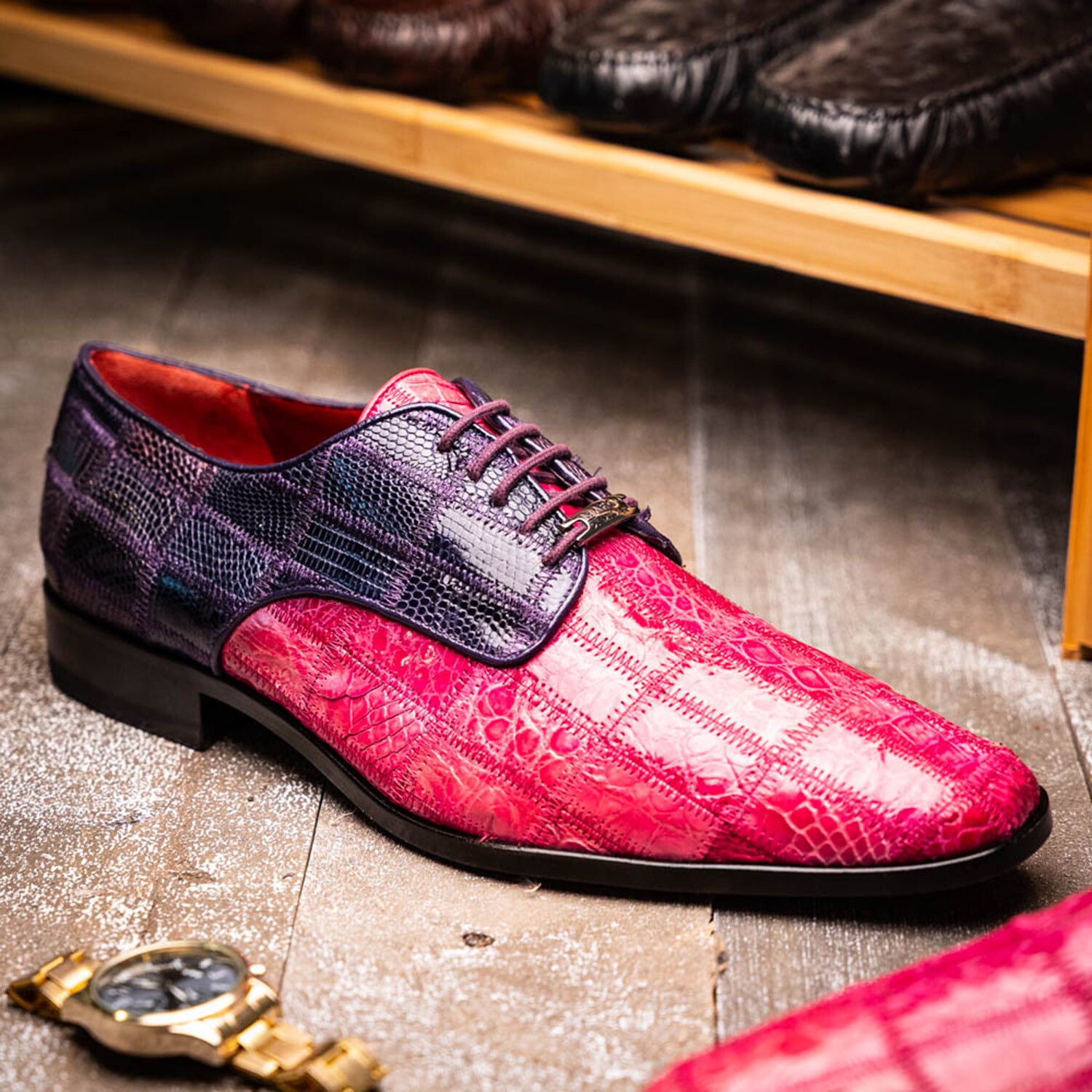 Pissa // Caiman + Belly Lizard Ring Leather Derbys // Pink + Purple