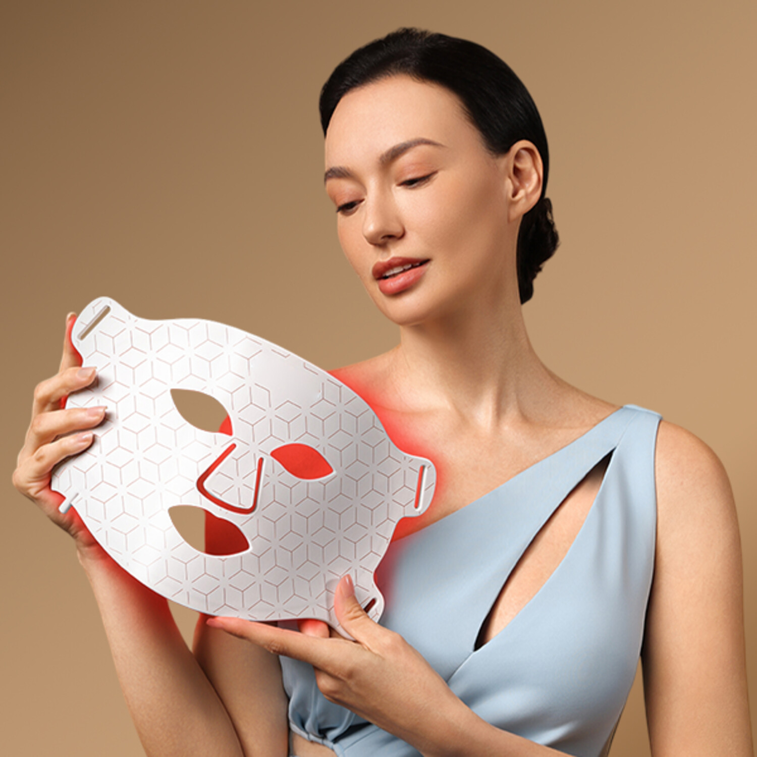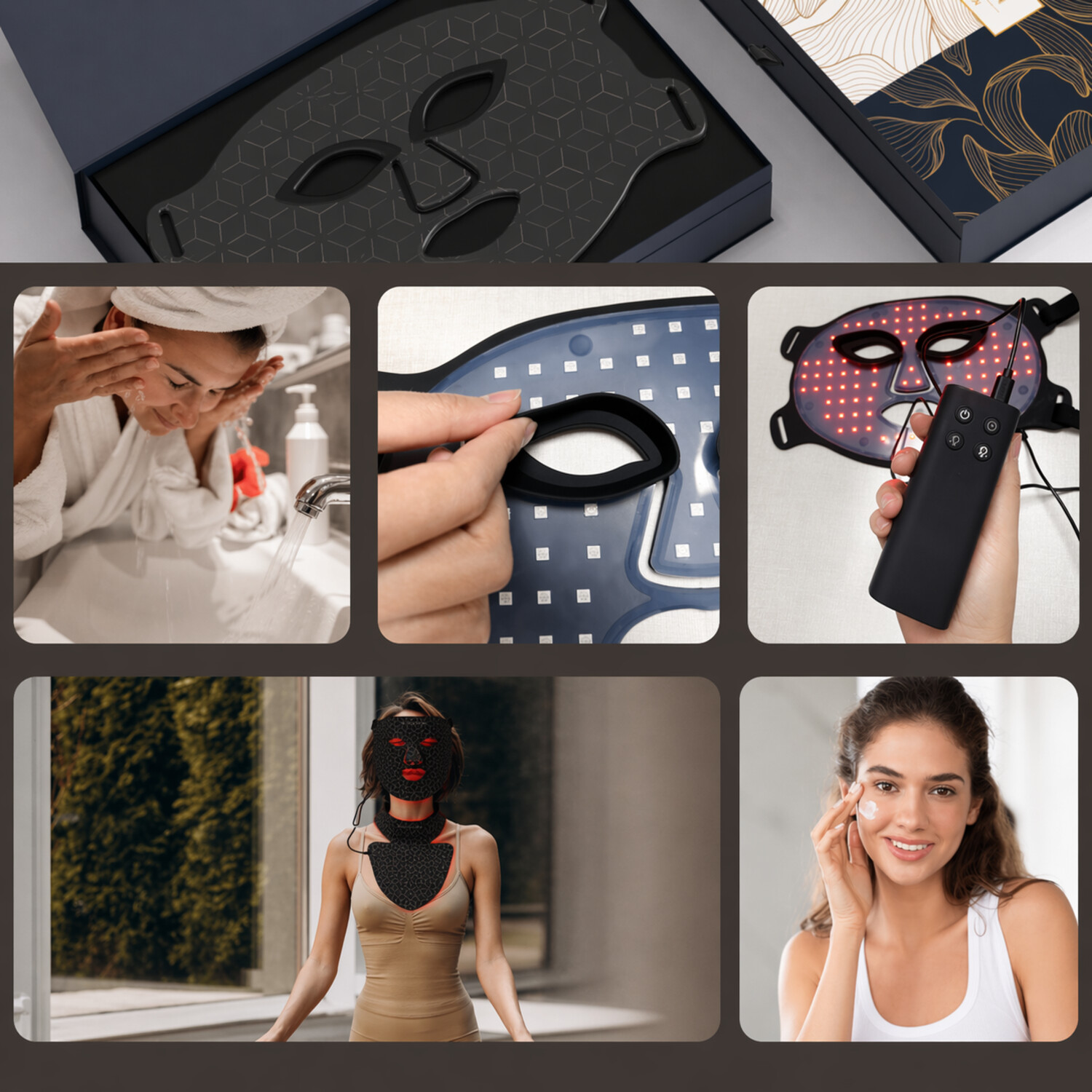 his LED face and neck mask delivers multi wavelength light therapy in a flexible, wearable design built for consistent at home use. Made from soft silicone with adjustable straps, it conforms comfortably to different face shapes while covering both face and neck in one system. Lightweight and foldable, it’s easy to store or travel with, while built in eye pads help reduce light exposure during sessions.