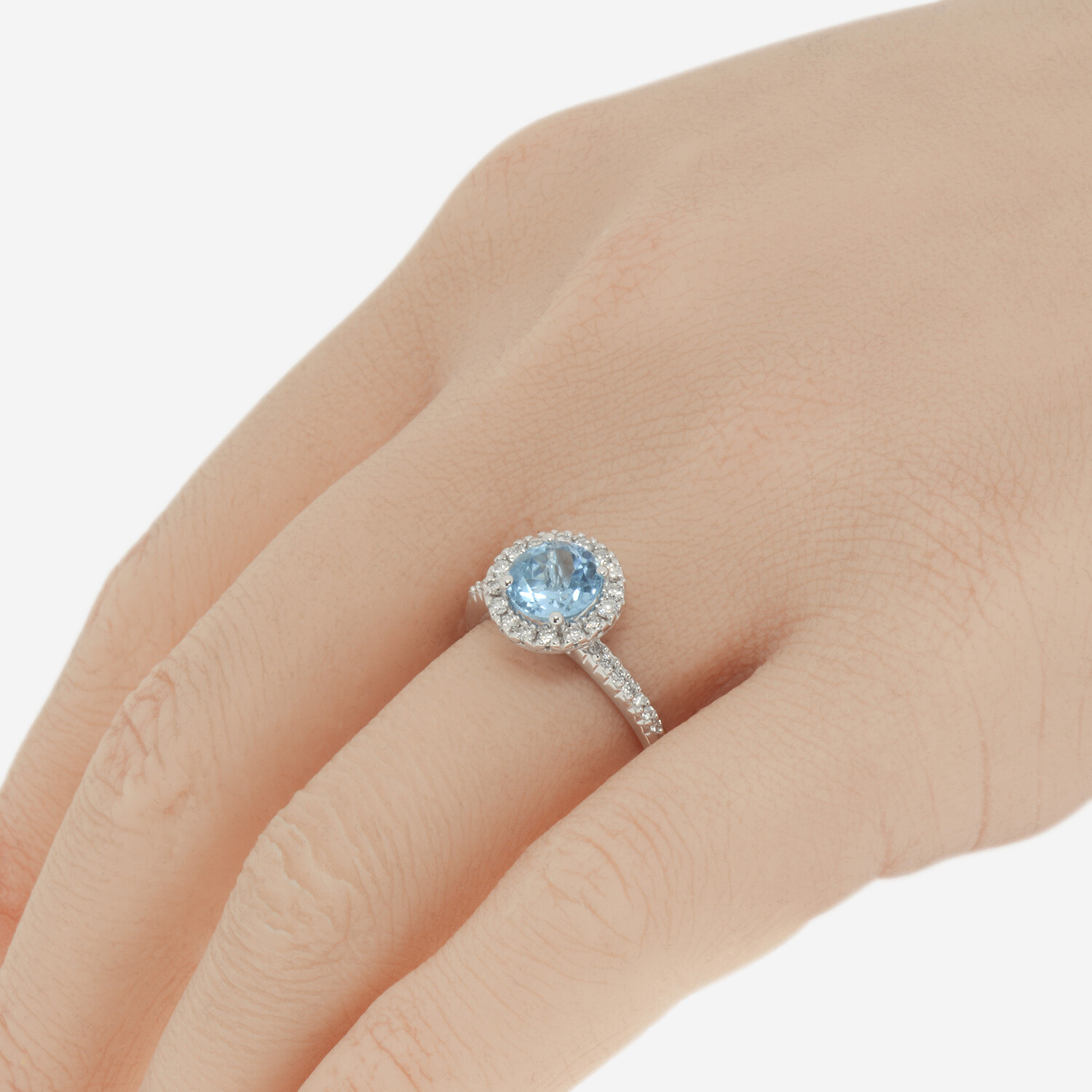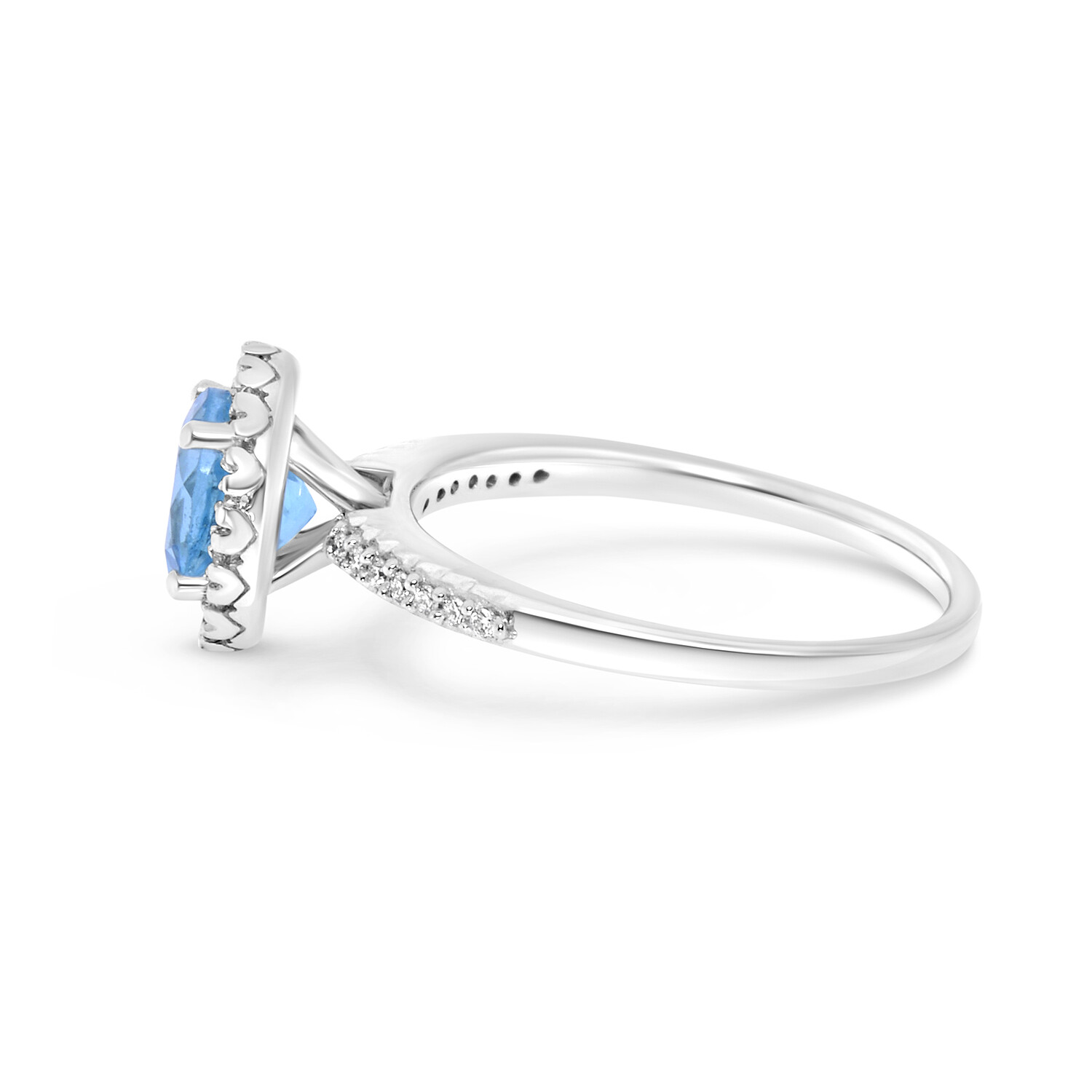 SuperOro // 14K White Gold Blue Topaz + Diamond Gemstone Ring // Ring Size: 7 // New