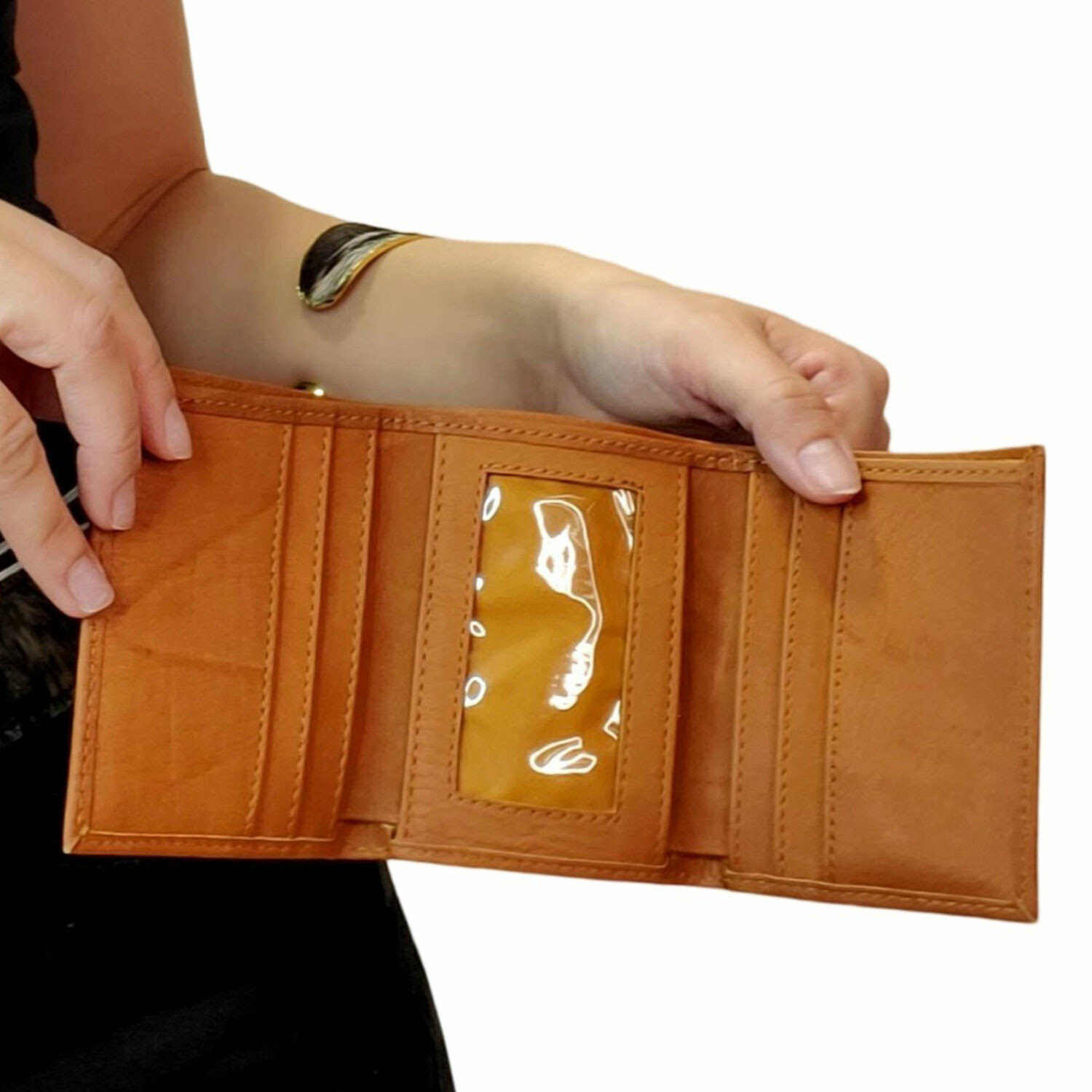 Crafted from genuine cowhide natural leather, the Abel Small Trifold Wallet offers compact functionality in a refined triple-fold design. This space-efficient wallet features an ID window, five card slots, three open pockets, and a six-slot photo insert—perfect for organizing essentials without the bulk.