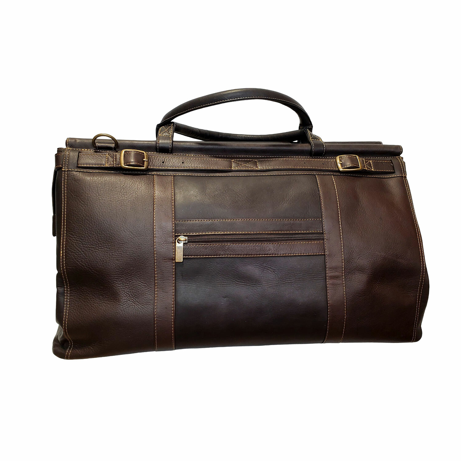 Crafted from genuine cowhide natural leather, the Adelia XL Carry On offers generous capacity and timeless design for travel or daily use. The structured top dowel closure features a zip and cinch belt-style strap for secure packing, while a full-size back zipper and pass-through panel allow it to slide over rolling luggage handles. With a detachable shoulder strap, exterior zip pocket, and metal feet, it's built for both style and function.