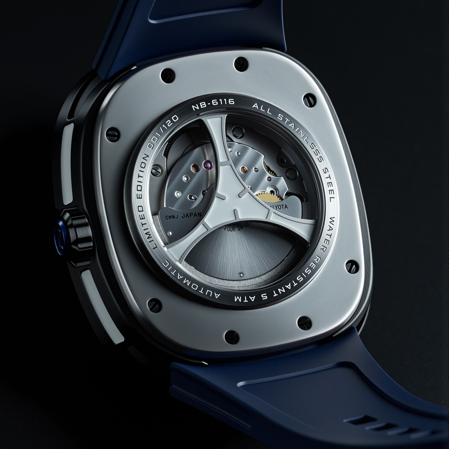 COLLECTION: TRI-STAR ORBIT MODEL: NB-6116-04 MOVEMENT: JAPAN AUTOMATIC CASE MATERIAL: STAINLESS STEEL CASE DIAMETER (MM): 46 CASE THICKNESS (MM): 20.9 CASE SHAPE: OVAL CASE COLOR: BLACK DIAL COLOR: BLUE BAND: RUBBER STRAP BAND COLOR: BLUE BUCKLE: STRAP BUCKLE BAND WIDTH (MM): 20 WATER RESISTANCE: 5 ATM WATCH WEIGHT (G): 168 WARRANTY: 2 YEARS