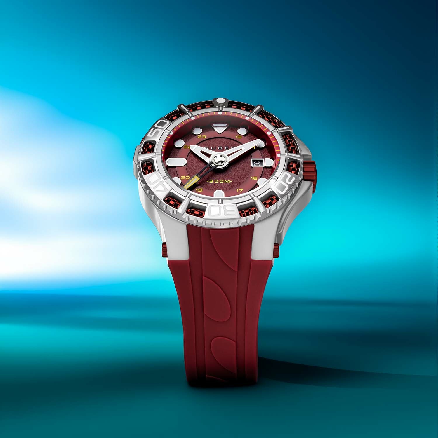 COLLECTION: MANTA MODEL: NB-6120-03 MOVEMENT: JAPAN AUTOMATIC CASE MATERIAL: STAINLESS STEEL CASE DIAMETER (MM): 50 CASE THICKNESS (MM): 21.4 CASE SHAPE: ROUND CASE COLOR: STAINLESS STEEL DIAL COLOR: RED BAND: SILICONE STRAP BAND COLOR: RED BUCKLE: STRAP BUCKLE BAND WIDTH (MM): 22 WATER RESISTANCE: 30 ATM WATCH WEIGHT (G): 200 WARRANTY: 2 YEARS