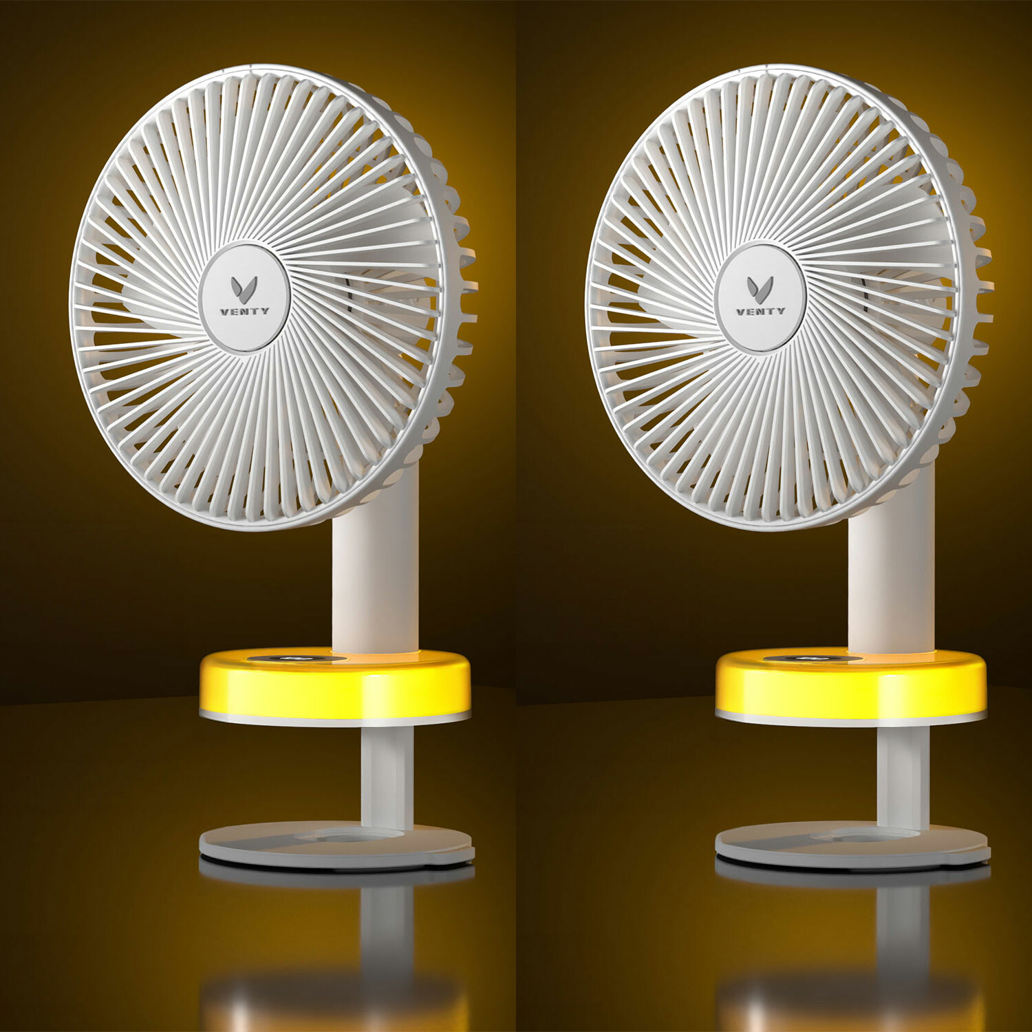 The Venty Clip Fan – Set of 2 delivers powerful, portable cooling with smart features and modern design. Each fan includes a sturdy aluminum clip with a padded, non-slip grip that attaches securely to desks, bed frames, and more. A built-in 5000 mAh rechargeable battery offers up to 10 hours of runtime, while the smart touch display gives you full control over fan speed, oscillation, and a patented LED light base with three ambient settings.