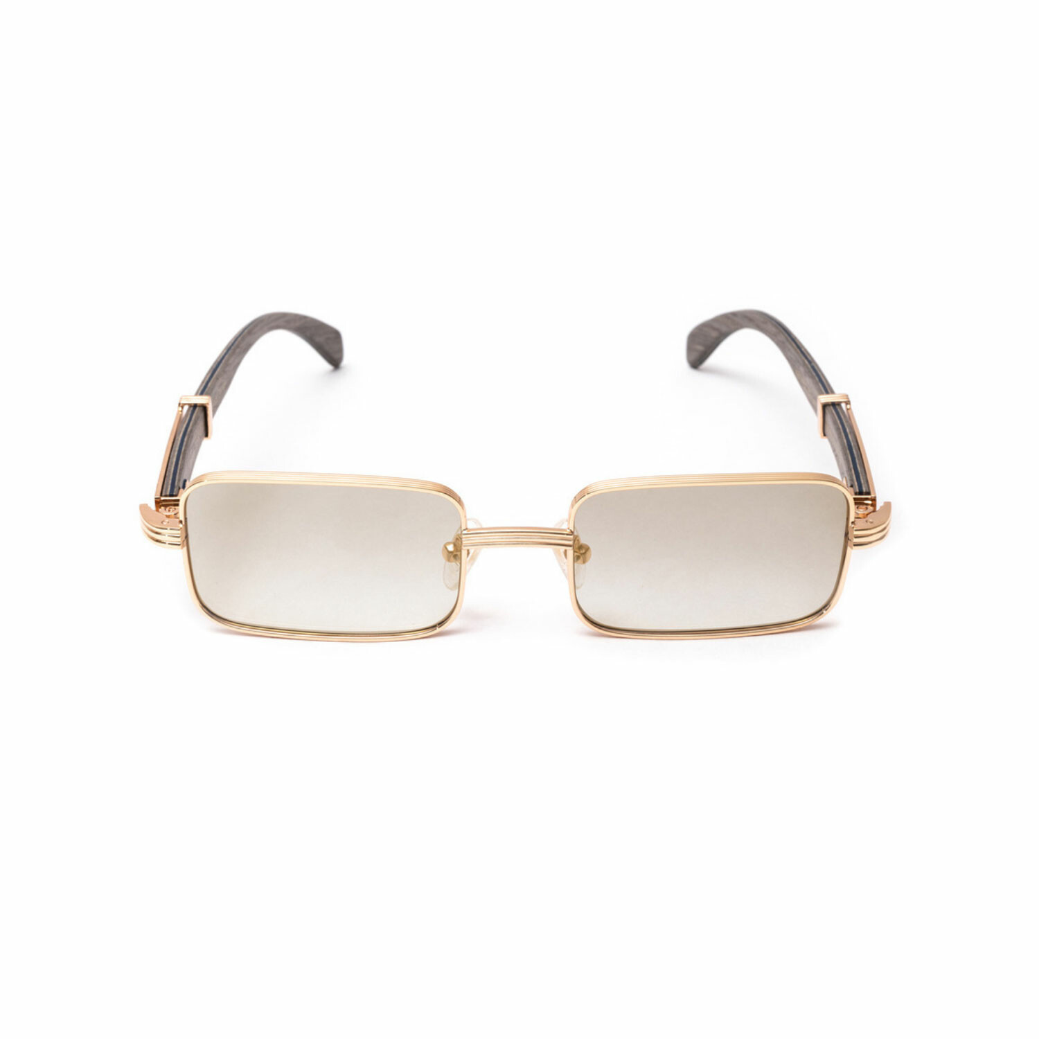 Unisex // Brigade 18KT Rose Gold & Wood Rectangular Sunglasses // Gradient Grey + White Gold