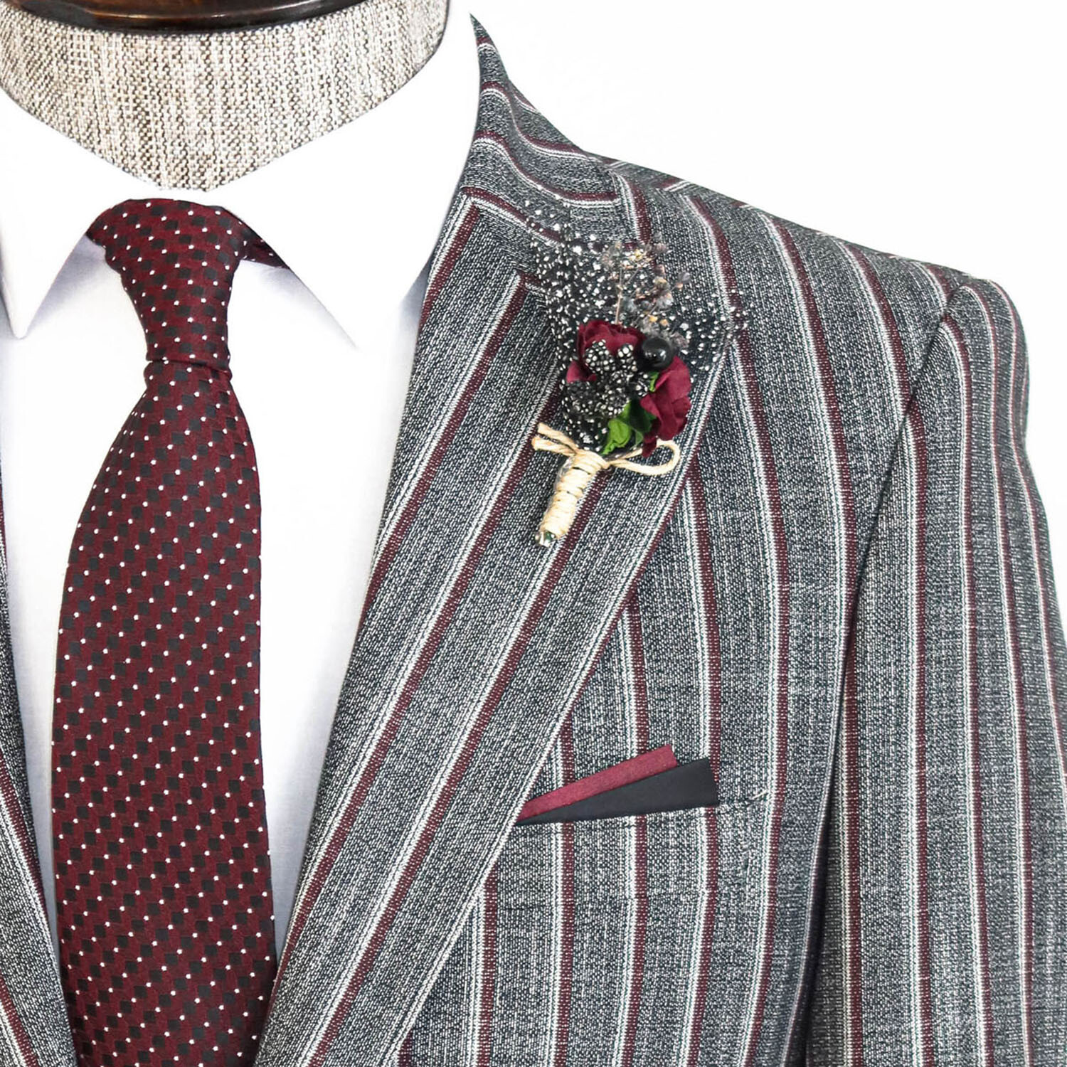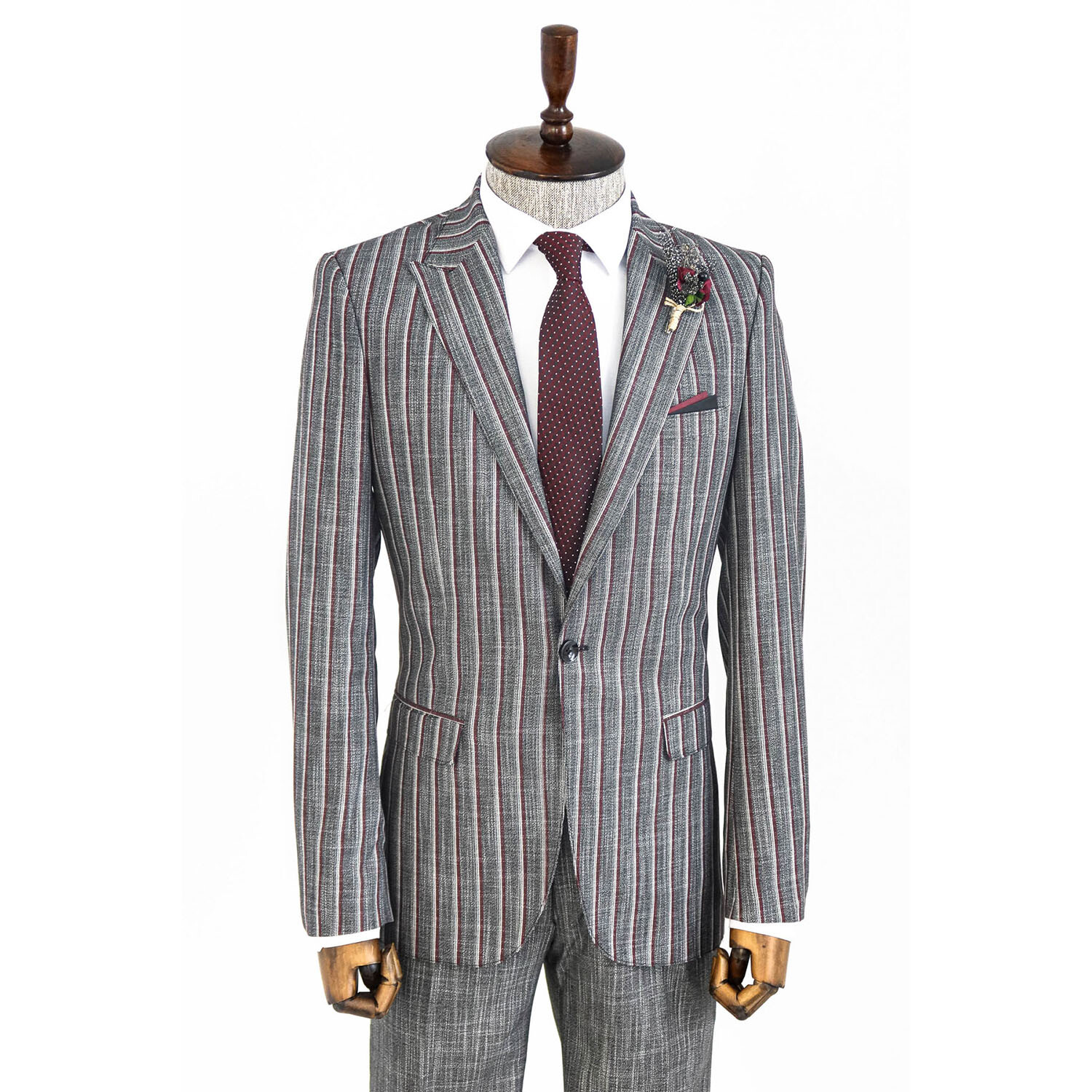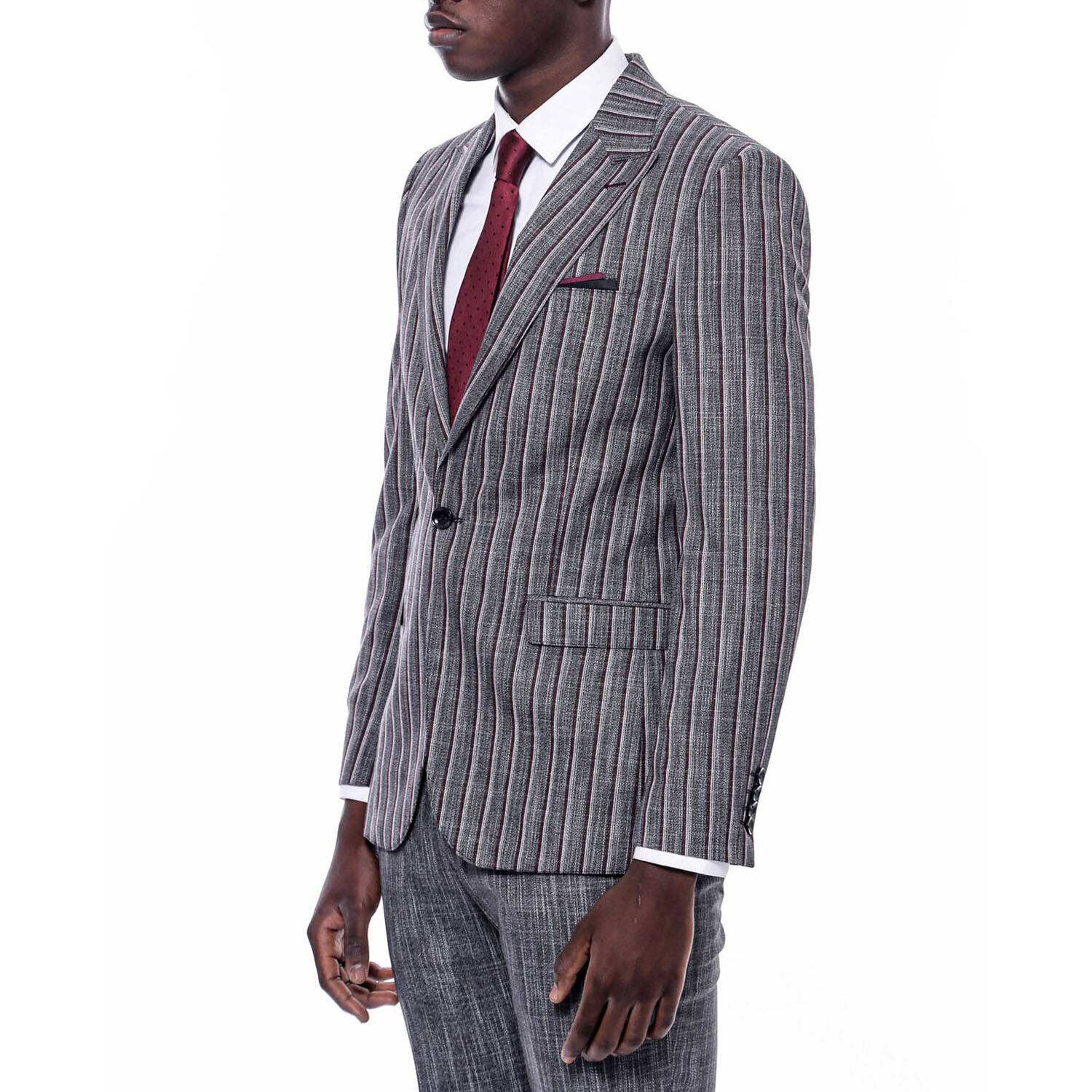 Jackson 2-Piece Striped Blazer Suit // Dark Gray + Burgundy