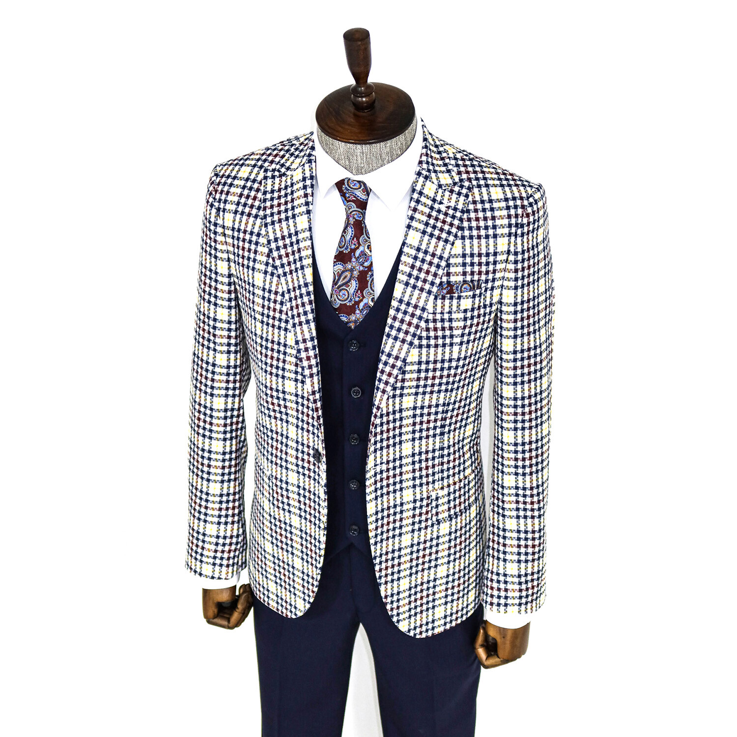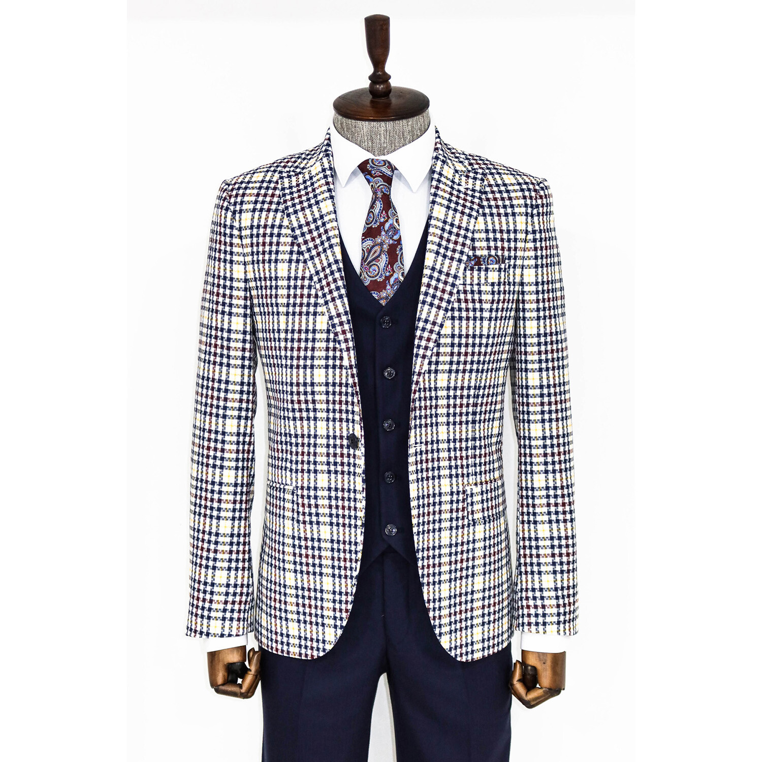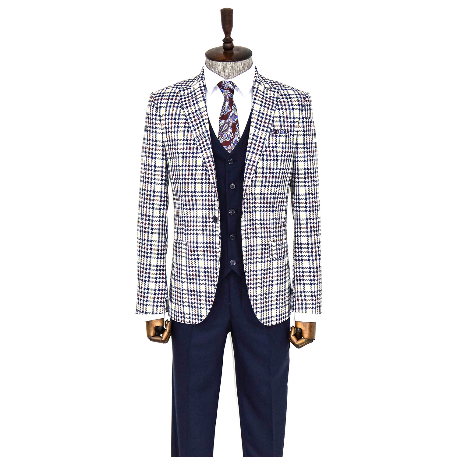 Remi Slim Fit Plaid 3-Piece Vested Suit // Navy + White