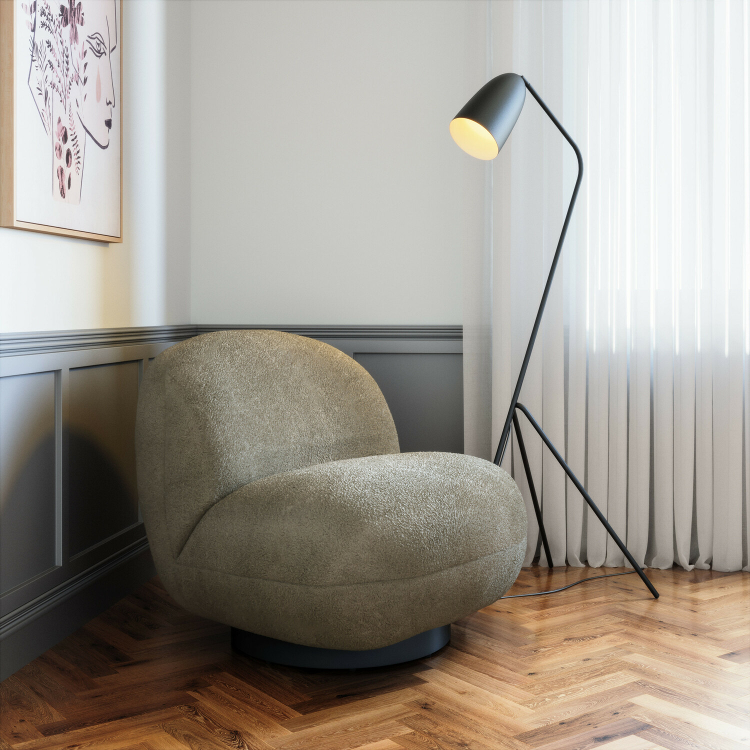 Shearling Style Fabric 100% Polyester, Plywood, Powder coated steel